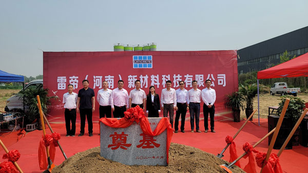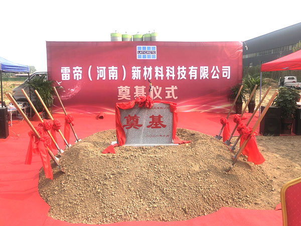 2021年6月11日,備受矚目的雷帝河南新工廠奠基儀式在河南隆重舉行。本次雷帝再次啟程成立雷帝(河南)新材料科技有限公司,總占地面積6000平方,初期構(gòu)建干粉生產(chǎn)線(xiàn)2條,規(guī)劃干粉年產(chǎn)能15萬(wàn)噸。