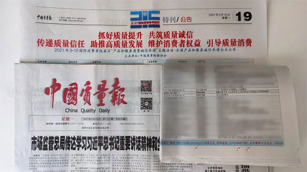 《中國質(zhì)量報》、《中國消費(fèi)者報》、中國經(jīng)濟(jì)網(wǎng)、中國質(zhì)量網(wǎng)、中國消費(fèi)網(wǎng)等多家權(quán)威媒體均予以集中展示和公告。不僅如此,公司還獲得了“全國質(zhì)量誠信先進(jìn)企業(yè)”的榮譽(yù)稱號,這是需要經(jīng)過中檢協(xié)長達(dá)三年的全方位監(jiān)督檢查合格才能獲得的榮譽(yù)稱號,其含金量可見一斑!