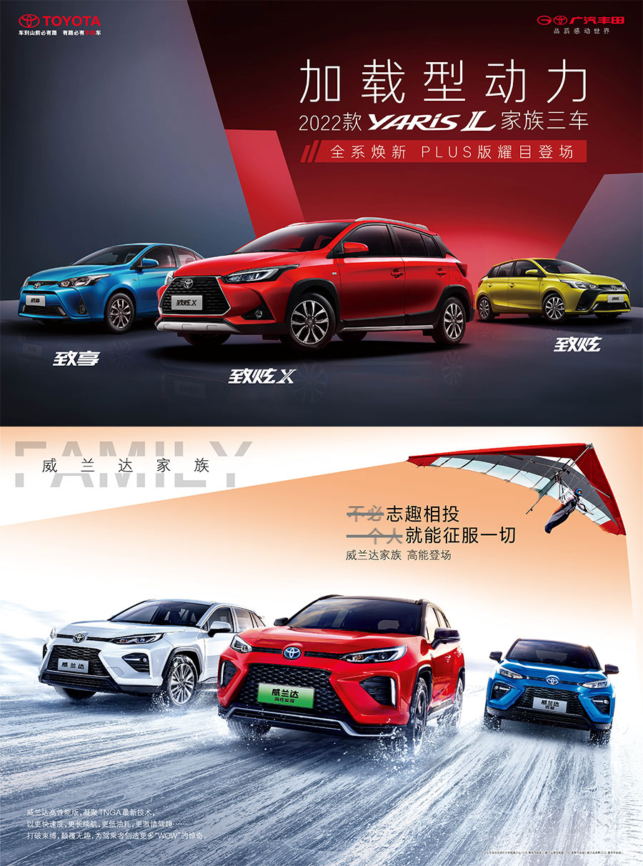 主要產(chǎn)品:bz4X、賽那、漢蘭達(dá)、威颯、威蘭達(dá)、凱美瑞、凌尚、雷凌、鋒蘭達(dá)、Yaris L、C-HR、iA5