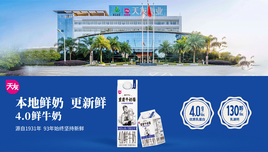 重慶市天友乳業(yè)股份有限公司始創(chuàng)于1931年,是一家具有93年歷史的專業(yè)乳制品全產(chǎn)業(yè)鏈企業(yè)。一直以成為“百年天友”為目標,始終以“成為最值得消費者喜愛的乳品領軍企業(yè)”為愿景。