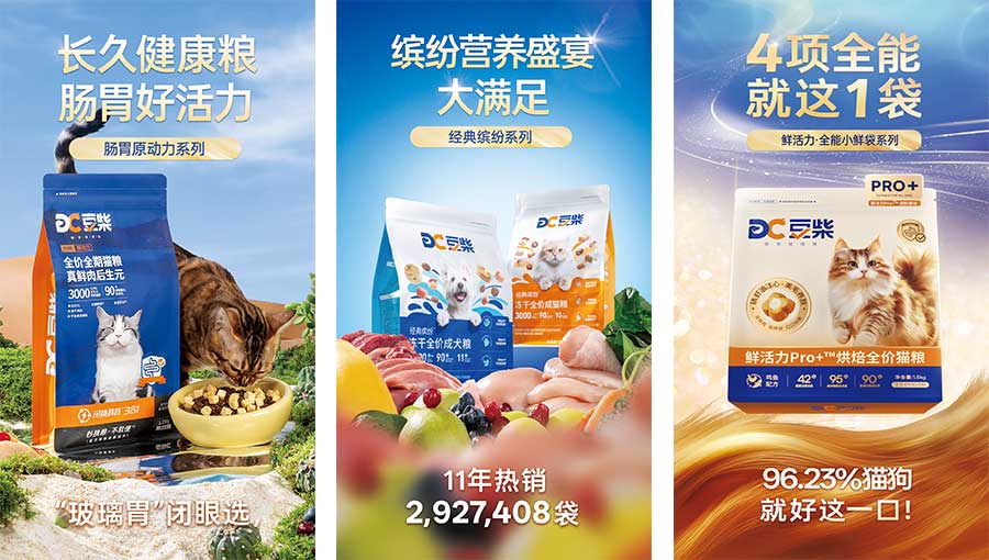 主要產(chǎn)品:豆柴貓(狗)主糧系列、營(yíng)養(yǎng)罐頭及凍干零食