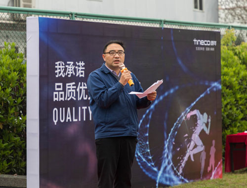 制造中心總監(jiān)劉焱南總發(fā)表演講,他強(qiáng)調(diào),品質(zhì)優(yōu)先是從我們每一個(gè)人做起,從我們的思想意識中就認(rèn)識到品質(zhì)的高度重要性,我們要遵守工藝紀(jì)律,嚴(yán)格按照我們標(biāo)準(zhǔn)作業(yè)指導(dǎo)書來進(jìn)行,每一個(gè)步驟嚴(yán)格遵守,使得我們做出來的產(chǎn)品,都是合格品。