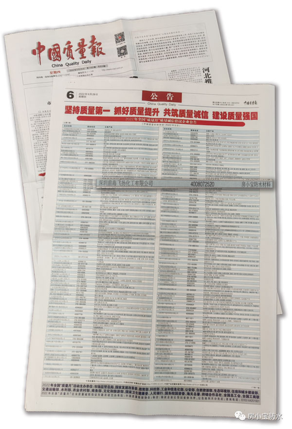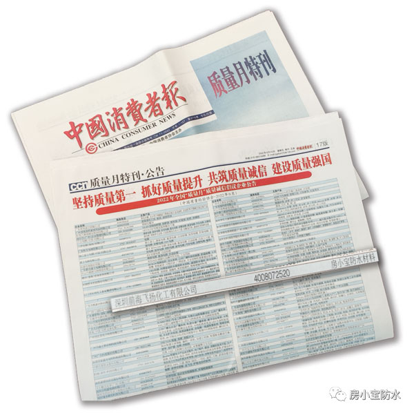 2022年全國(guó)“質(zhì)量月”企業(yè)質(zhì)量誠信倡議活動(dòng)公告一經(jīng)發(fā)布,中國(guó)質(zhì)量網(wǎng)、中國(guó)消費(fèi)網(wǎng)、中國(guó)經(jīng)濟(jì)網(wǎng)等紛紛報(bào)道,房小寶防水以優(yōu)秀的產(chǎn)品品質(zhì)從眾多優(yōu)秀企業(yè)中脫穎而出!