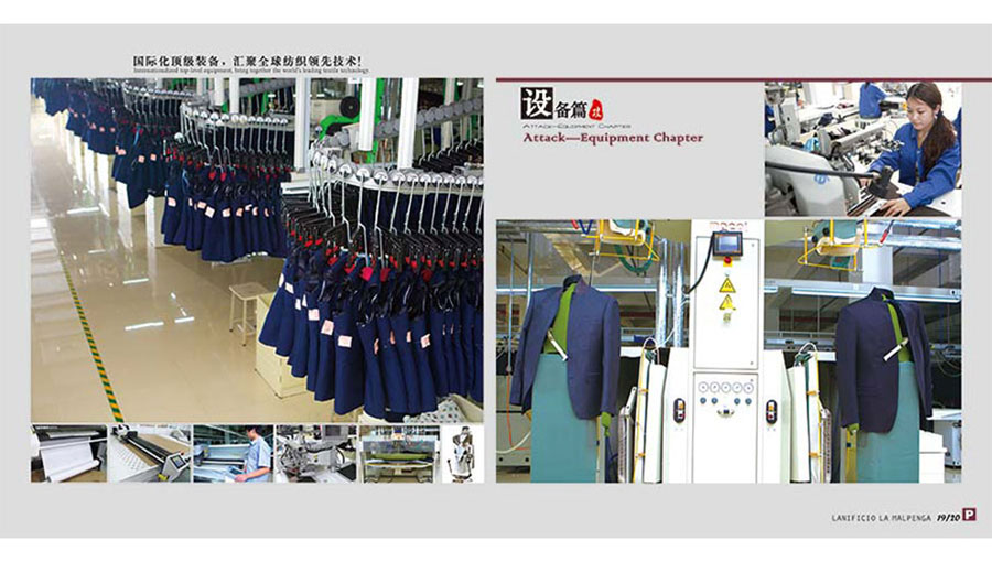 紡織板塊專注于SINFONIA、ARMONIA、REGAL精紡紗、半精紡紗、粗紡紗、花式紗等各類針織紗線、高檔精紡呢絨面料以及LANIFICIO LA MALPENGA職業(yè)裝和PALLADIO高端商務(wù)服裝的生產(chǎn),年產(chǎn)各類無結(jié)毛紗40000噸,高檔精紡面料1000萬米,西服100萬套,襯衫200萬件。