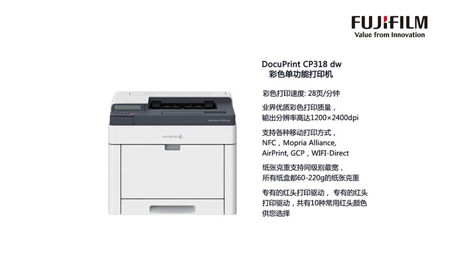 主要產(chǎn)品:富士膠片(原富士施樂)打印機、多功能一體機、智能型彩色數(shù)碼多功能機、智能辦公解決方案,生產(chǎn)型數(shù)字印刷系統(tǒng)、大幅面工程系統(tǒng),文印管理外包服務(wù),文檔(含數(shù)字文檔)管理軟件及系統(tǒng)