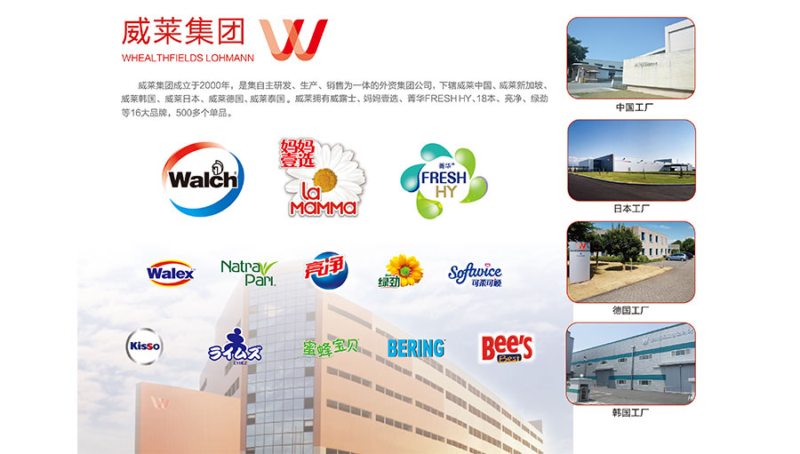 威萊(廣州)日用品有限公司(以下簡(jiǎn)稱:威萊)成立于2004年12月17日,負(fù)責(zé)威萊中國(guó)地區(qū)業(yè)務(wù),是一家集研發(fā)、生產(chǎn)日化產(chǎn)品、洗滌劑、消毒劑及其相關(guān)系列產(chǎn)品的國(guó)家高新技術(shù)企業(yè),同時(shí)也是廣東省、廣州市企業(yè)技術(shù)中心、廣州市清潔生產(chǎn)優(yōu)秀企業(yè),是國(guó)內(nèi)家居洗滌和消毒產(chǎn)品領(lǐng)域的知名領(lǐng)導(dǎo)企業(yè)之一。威萊公司總部位于廣州,注冊(cè)地址為廣州市從化區(qū)明珠工業(yè)區(qū)偉業(yè)路8號(hào),目前在國(guó)內(nèi)外有多個(gè)生產(chǎn)基地,主要品牌有威露士、衛(wèi)新、媽媽壹選、18本、亮凈等,共16個(gè)品牌及500多個(gè)單品,其中威露士消毒液、威露士泡沫抑菌洗手液、衛(wèi)新香薰洗衣液、媽媽壹選天然皂液等知名產(chǎn)品均獲得廣大消費(fèi)者購(gòu)買使用,家清品類電商業(yè)績(jī)年年增長(zhǎng)。2018年,威萊成為日用化學(xué)品科學(xué)理事會(huì)常務(wù)理事單位,威露士、媽媽壹選、衛(wèi)新榮獲“億元品牌”稱號(hào)。2021年,菁華榮獲2021年天貓金妝獎(jiǎng)新品牌年度織物護(hù)理獎(jiǎng)、威萊官方旗艦店榮獲2021年度淘寶直播行業(yè)TOP商家。2022年,威萊官方旗艦店榮獲2022天貓家清行業(yè)獎(jiǎng)年度自播之星、威露士有氧洗衣液榮獲2022年度天貓金妝獎(jiǎng)年度洗衣產(chǎn)品獎(jiǎng)。
