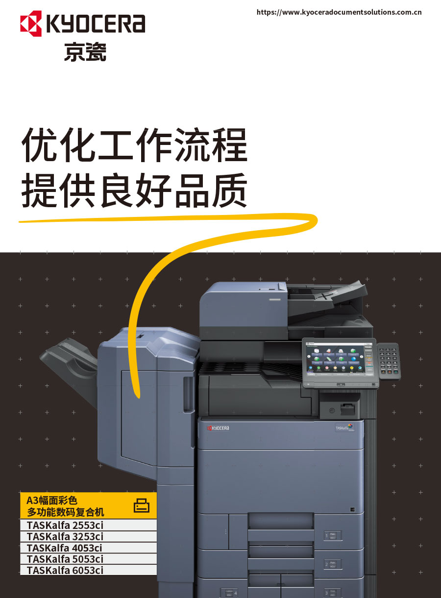 京瓷株式會社由稻盛和夫先生創(chuàng)辦于1959年。“敬天愛人”社訓(xùn)貫徹集團各分公司運營中。京瓷辦公信息系統(tǒng)(中國)有限公司主要負(fù)責(zé)彩色和黑白數(shù)碼復(fù)合機、彩色和黑白數(shù)碼激光打印機、生產(chǎn)型彩色噴墨數(shù)碼印刷系統(tǒng)、辦公解決方案等系列辦公自動化設(shè)備的銷售。京瓷產(chǎn)品憑借其更低的后期總體使用成本,可靠的長壽命感光鼓,獲得眾多政府、企業(yè)的青睞,在中國的市場占有率逐年穩(wěn)步提升。