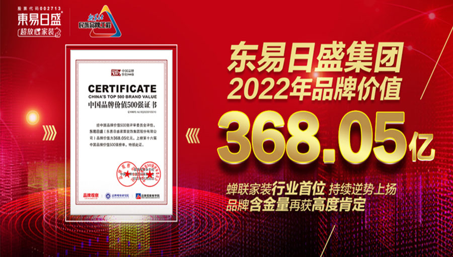 東易日盛家居裝飾集團股份有限公司始創(chuàng)于1997年,目前已發(fā)展為一家專業(yè)化、品牌化、數(shù)字化、規(guī)?;?、產業(yè)化的大型上市家裝集團公司(股票代碼:002713),連續(xù)多年居于《中國最具價值品牌500強》家裝行業(yè)前列,品牌價值高達368.05億元。