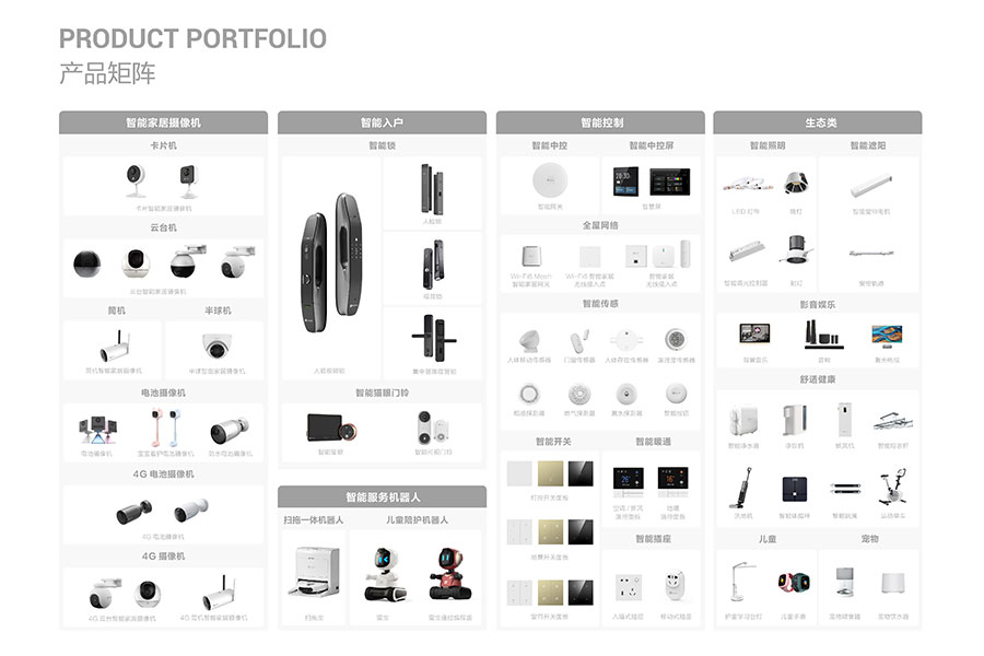 主要產品:螢石(EZVIZ)智能家居攝像機、智能入戶、智能服務機器人、智能控制、螢石物聯(lián)云平臺