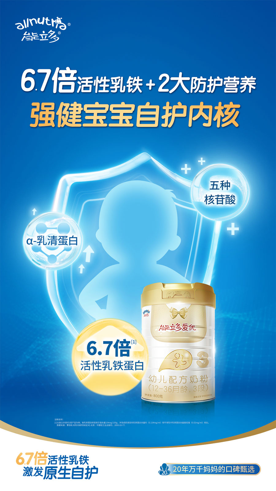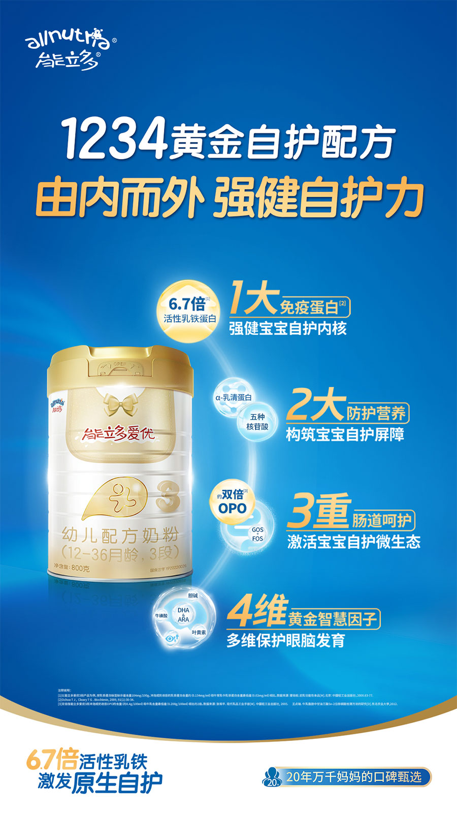 澳優(yōu)以“全球營養(yǎng) 呵護(hù)成長”為企業(yè)使命,以消費(fèi)需求為中心,持續(xù)拓展產(chǎn)品矩陣,已形成覆蓋嬰配奶粉、保健食品、特醫(yī)食品、個(gè)性化營養(yǎng)品及服務(wù)的全生命周期呵護(hù)體系,正朝著“成為全球最受信賴的配方奶粉和營養(yǎng)健康公司”的愿景穩(wěn)步邁進(jìn)。
