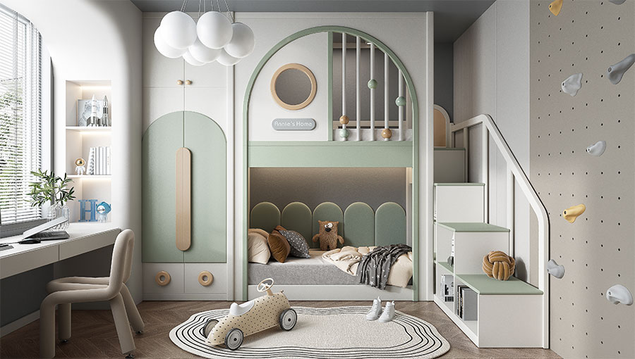 松堡王國圍繞孩子成長居家生活四大基礎(chǔ)功能:學(xué)習(xí)區(qū)、收納區(qū)、娛樂區(qū)、睡眠區(qū),深度交合孩子成長方式,以美學(xué)設(shè)計、親子陪伴、趣味模塊為新空間設(shè)計概念,正向引導(dǎo)孩子建立良好生活習(xí)慣,形成成長生活秩序感,用愛為孩子打造有趣的成長空間。
