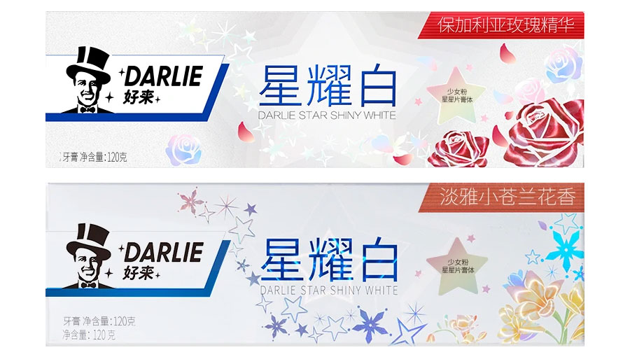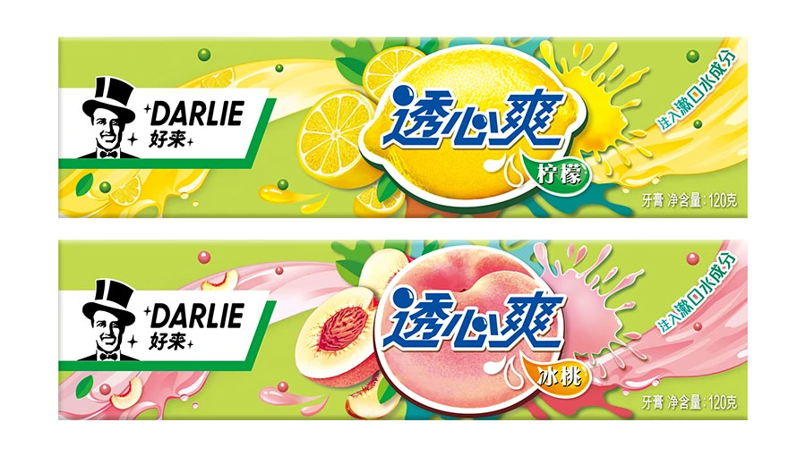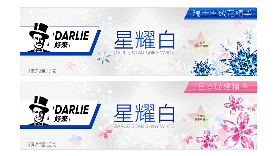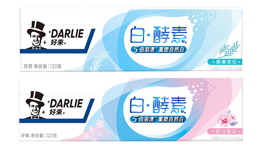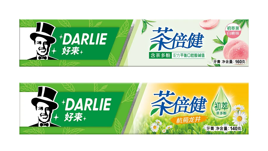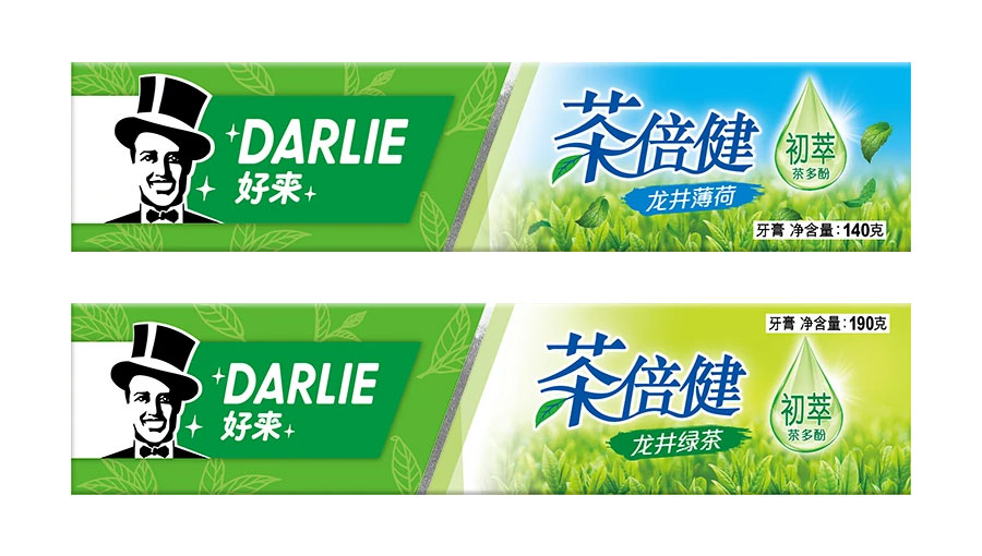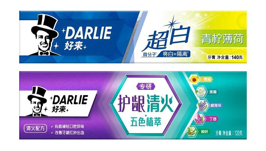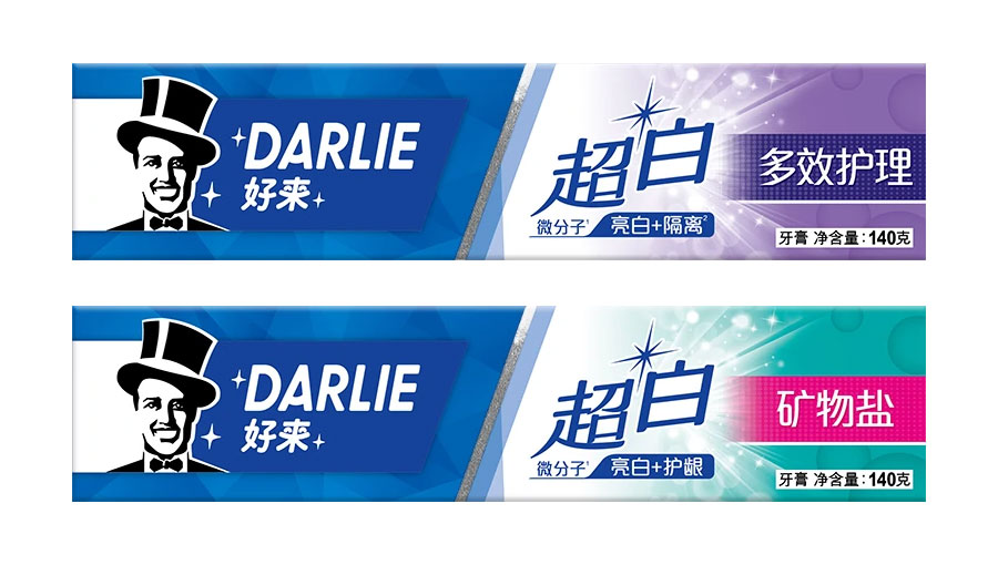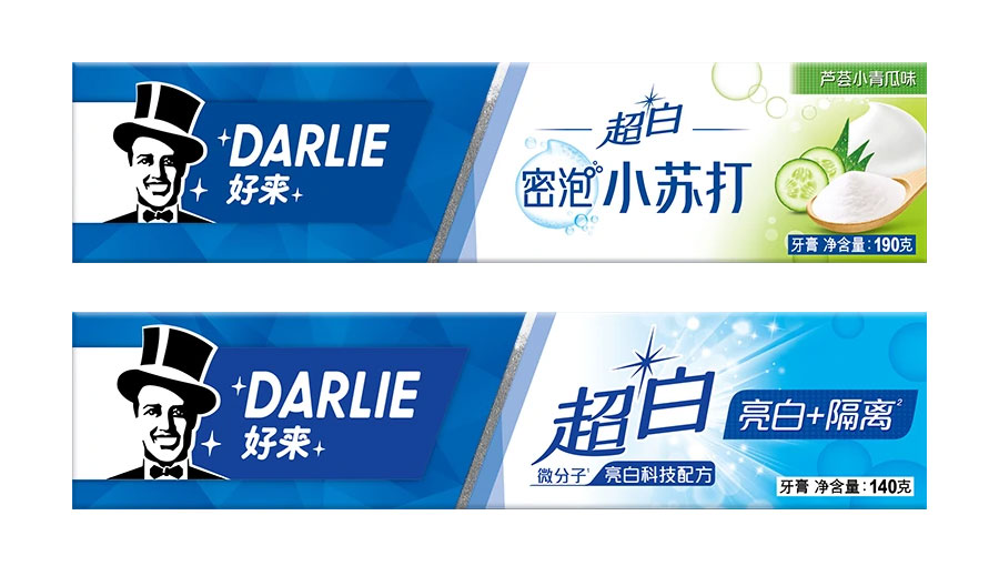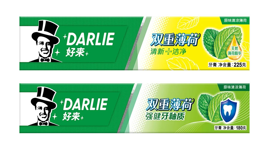 目前DARLIE好來牙膏共有數(shù)十個品種、多種規(guī)格(18g-250g),其中銷往中國大陸市場包括經(jīng)典的雙重薄荷系列、茶倍健系列、超白系列、專研護齦系列、抗敏感系列、透心爽系列,兒童牙膏系列及新增了白.酵素系列和星耀白系列等20個品種,另外還有多個品種同時銷往新加坡、馬來西亞、泰國、中國香港和中國臺灣等市場。