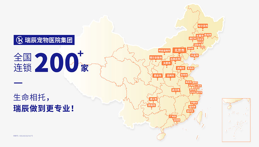 瑞辰寵物醫(yī)院集團(tuán)由晨壹基金、KKR集團(tuán)、愛爾眼科及少量國(guó)有資本等投資機(jī)構(gòu)共同投資。集團(tuán)現(xiàn)已完成B輪融資,在全國(guó)超50個(gè)大中城市擁有200+家優(yōu)秀寵物醫(yī)院。截至2024年6月,集團(tuán)旗下醫(yī)院覆蓋區(qū)域包括北京、河北、山西、內(nèi)蒙古、遼寧、吉林、黑龍江、上海、江蘇、浙江、福建、山東、河南、湖北、廣東、貴州與陜西等地。以良好發(fā)展態(tài)勢(shì)為依托,聚焦行業(yè)市場(chǎng),集團(tuán)合理規(guī)劃在全國(guó)重點(diǎn)區(qū)域優(yōu)先集中建設(shè)寵物轉(zhuǎn)診中心醫(yī)院和國(guó)際化寵物醫(yī)院的戰(zhàn)略布局,致力于保障中國(guó)萬(wàn)千家庭的寵物健康。