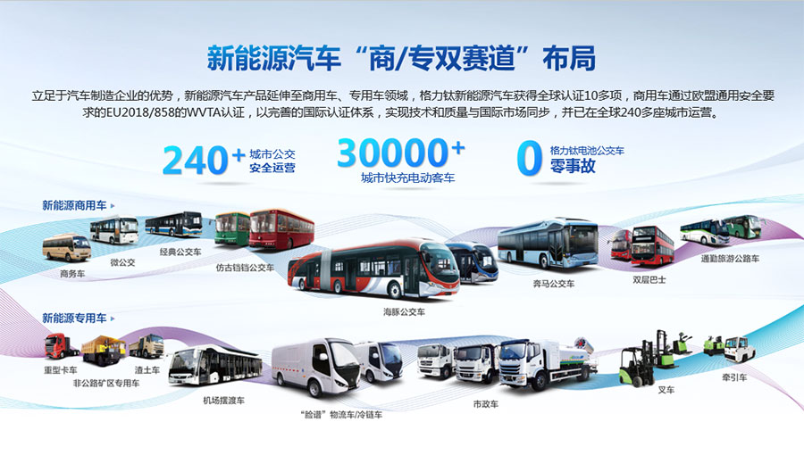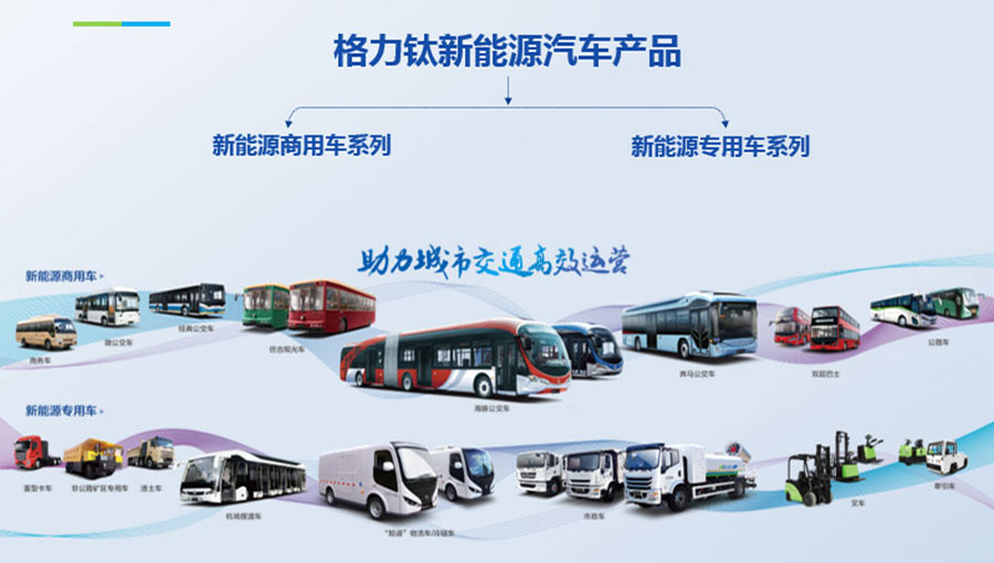 格力鈦新能源股份有限公司一直致力于研發(fā)混合動(dòng)力、氫燃料、純電動(dòng)車等一系列節(jié)能減排的新能源環(huán)保型客車/公交車/物流車,所研制產(chǎn)品體現(xiàn)了電子化、智能化、綠色化、節(jié)能化的鮮明特色,堅(jiān)持以產(chǎn)品開發(fā)和市場(chǎng)開拓相結(jié)合的經(jīng)營(yíng)方針,引進(jìn)國(guó)外先進(jìn)客車生產(chǎn)技術(shù),力爭(zhēng)通過(guò)資本、技術(shù)及產(chǎn)業(yè)優(yōu)勢(shì),做大區(qū)域市場(chǎng),進(jìn)軍國(guó)際市場(chǎng),力爭(zhēng)成為中國(guó)新能源汽車的領(lǐng)軍企業(yè)集團(tuán)。