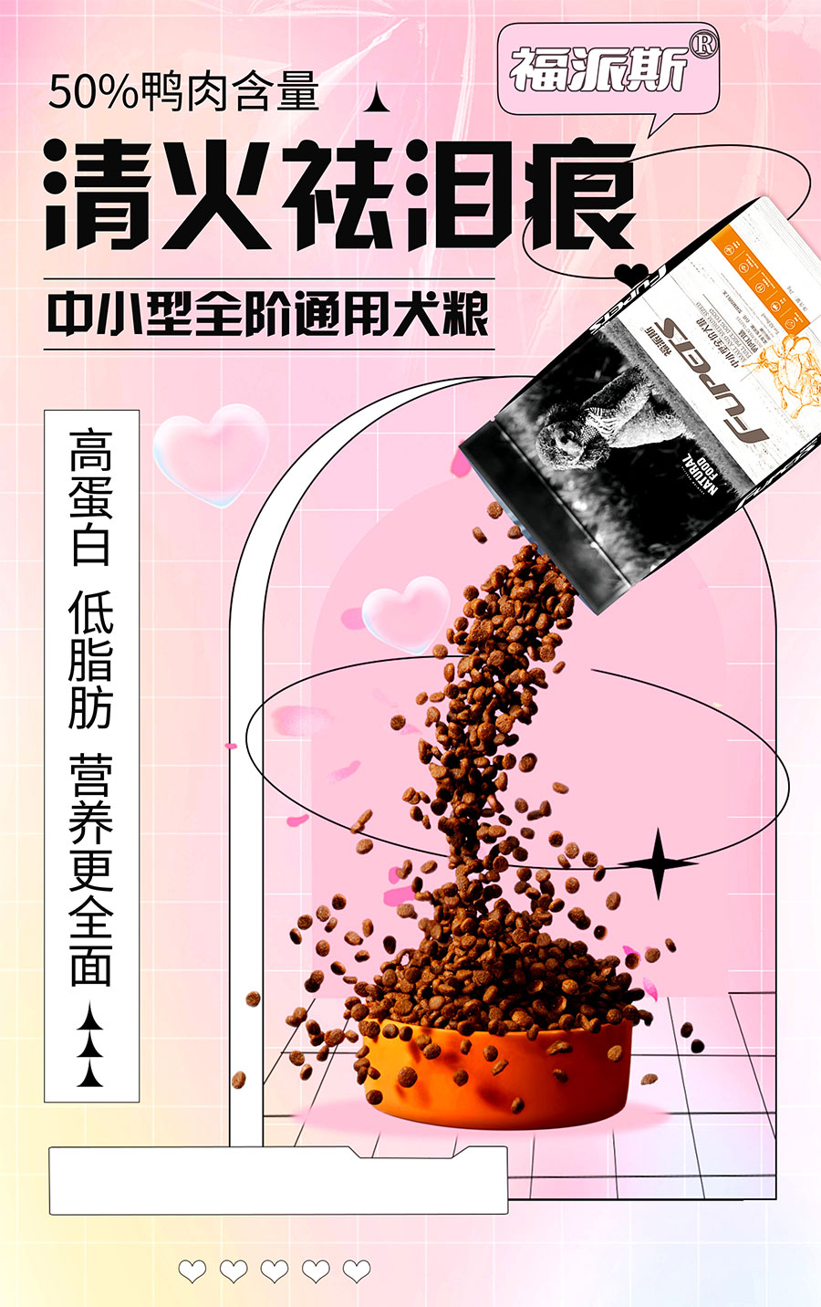 福派斯致力于呵護(hù)愛寵的健康,產(chǎn)品涵蓋犬用、貓用兩大類別,涉及寵物主糧、濕糧、零食等,以“自然食材、科學(xué)配方、真摯熱愛”為品牌核心理念,為愛寵提供健康全面的營養(yǎng)保障,讓人們養(yǎng)寵更輕松,讓鏟屎官和愛寵們彼此陪伴的更長(zhǎng)久。