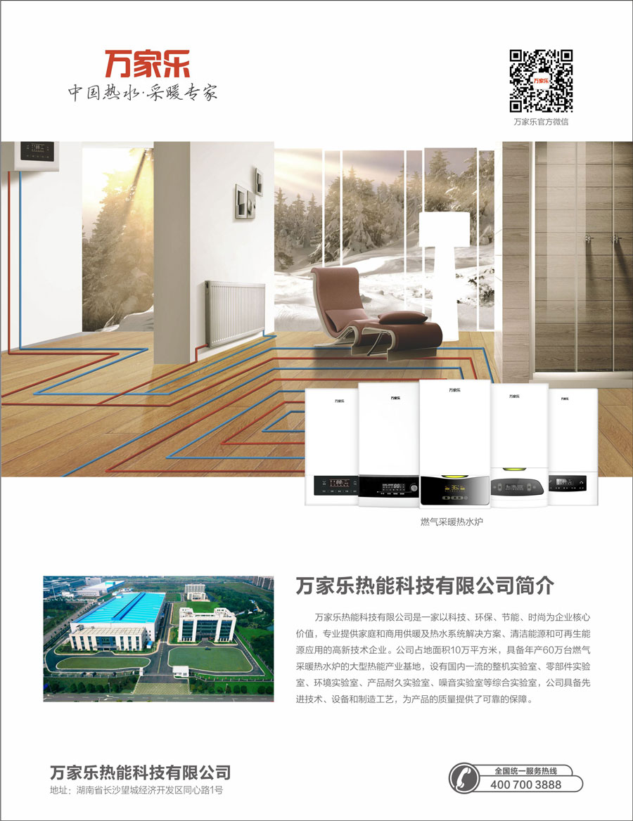 萬(wàn)家樂(lè)熱能科技有限公司是一家以科技、環(huán)保、節(jié)能、時(shí)尚為企業(yè)核心價(jià)值,專業(yè)提供家庭和商用供暖及熱水系統(tǒng)解決方案、清潔能源和可再生能源應(yīng)用的高新技術(shù)企業(yè)。公司占地面積10萬(wàn)平方米,具備年產(chǎn)30萬(wàn)臺(tái)燃?xì)獗趻鞝t的大型熱能產(chǎn)業(yè)基地,設(shè)有國(guó)內(nèi)一流的整機(jī)實(shí)驗(yàn)室、零部件實(shí)驗(yàn)室、環(huán)境實(shí)驗(yàn)室、產(chǎn)品耐久實(shí)驗(yàn)室、噪音實(shí)驗(yàn)室五個(gè)綜合實(shí)驗(yàn)室,引進(jìn)歐美等國(guó)的先進(jìn)技術(shù)、設(shè)備和制造工藝,為產(chǎn)品的質(zhì)量提供了可靠的保障。