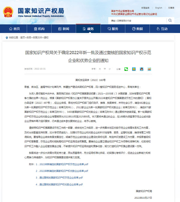 “國家知識產(chǎn)權(quán)優(yōu)勢企業(yè)”是我國知識產(chǎn)權(quán)管理領(lǐng)域的最高榮譽(yù)之一,是國家對企業(yè)在知識產(chǎn)權(quán)的創(chuàng)造、運(yùn)用、保護(hù)、管理等方面的突出工作所作出的高度評價(jià)。入選企業(yè)都是擁有自主知識產(chǎn)權(quán)和知名品牌、具備行業(yè)競爭優(yōu)勢的技術(shù)領(lǐng)先企業(yè)。