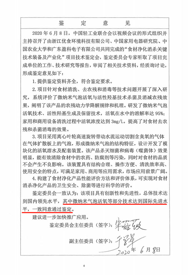 具有自主知識產(chǎn)權(quán)的“微納米氣泡活氧羥基”(UISH MOH+ ?)技術(shù)被中國輕工業(yè)聯(lián)合會鑒定為國際先進(jìn)。