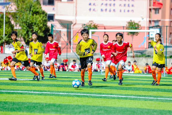活動現(xiàn)場還舉辦了在安踏運(yùn)動場的第一場足球賽。據(jù)了解,楓香九校是足球特色校,但學(xué)校一直缺少專業(yè)足球場,此次安踏足球運(yùn)動場的捐建將改善學(xué)校的運(yùn)動環(huán)境,推動當(dāng)?shù)刈闱蜻\(yùn)動發(fā)展。此外,在今年8月開展的安踏體育課教師培訓(xùn)貴州站中,石阡縣派出了33名鄉(xiāng)村體育教師參與培訓(xùn)。安踏集團(tuán)攜手合作伙伴和兒童青少年體育專家共同開發(fā)安踏體育課,課程旨在通過培訓(xùn)一線體育教師,提升專業(yè)體育教育水平,激發(fā)體育教師的教學(xué)熱情,從而達(dá)到全方位推動深化體教融合,改善體育教育質(zhì)量,促進(jìn)青少年全面健康成長的目的。