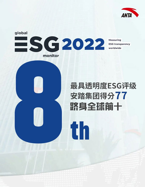 安踏集團(tuán)位列Global ESG Monitor 2022全球最具透明度ESG報告第八位及香港藍(lán)籌之冠