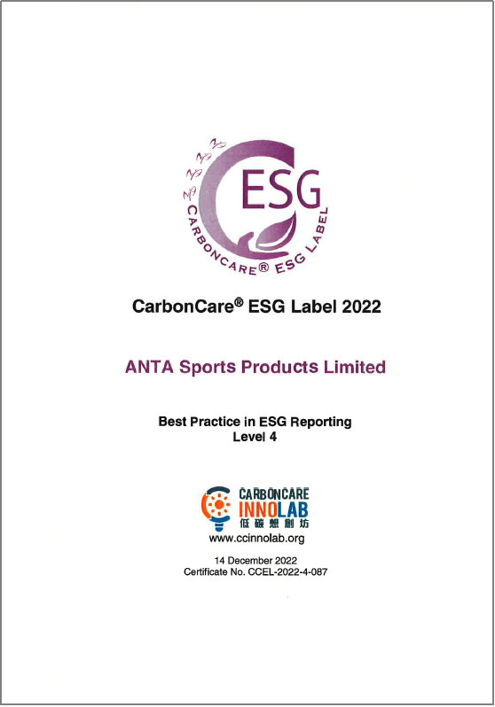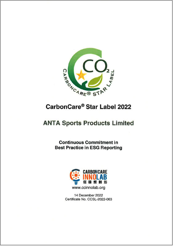 此外,安踏集團(tuán)于低碳想創(chuàng)坊(Carbon Care Innovation Lab)中獲頒「ESG報告最佳匯報實踐第四級」,較去年提升兩級,反映集團(tuán)ESG報告表現(xiàn)優(yōu)異,在公司董事局的問責(zé)度、實質(zhì)性評估、社會關(guān)鍵績效指標(biāo)的披露,以及企業(yè)氣候行動的努力亦得到外界的認(rèn)可。安踏集團(tuán)曾于過往連續(xù)三年成功取得「低碳關(guān)懷標(biāo)簽」,因此本年度獲額外頒發(fā)「低碳關(guān)懷星級標(biāo)簽」,以表彰過往在ESG方面的成果。