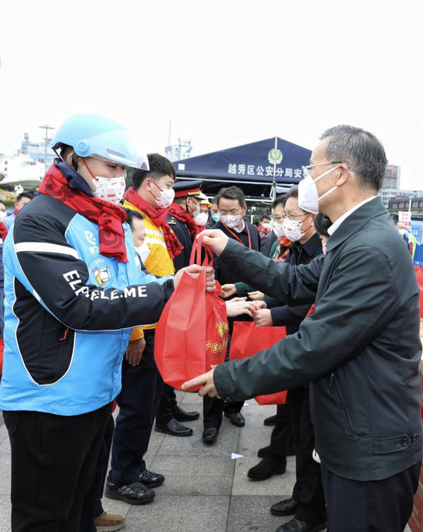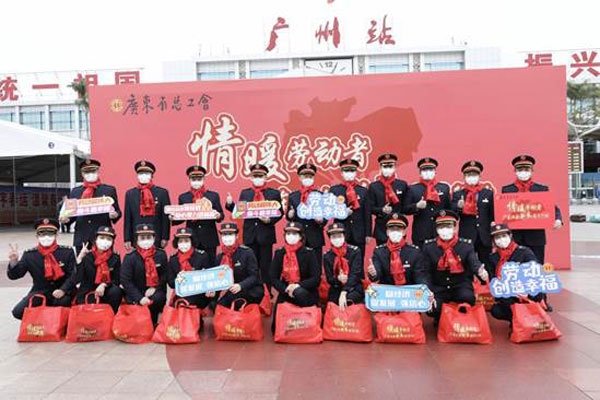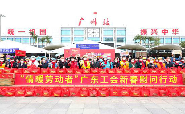 省人大常委會黨組成員、省總工會主席呂業(yè)升出席慰問活動并向廣大勞動者致以親切問候和新春祝福。省總工會黨組書記、常務副主席陳偉東,省總工會黨組成員、副主席杜玲,省總工會副主席(兼職)、廣州市人大常委會副主任、市總工會黨組書記、主席唐航浩等代表廣東工會向慰問現(xiàn)場的網(wǎng)約配送員、環(huán)衛(wèi)工人、建筑工人以及保障春運的保安員、醫(yī)務人員、公安干警、鐵路客運服務人員等職工代表送上新春慰問大禮包。廣州市總工會及越秀區(qū)總工會相關領導參加了慰問活動。