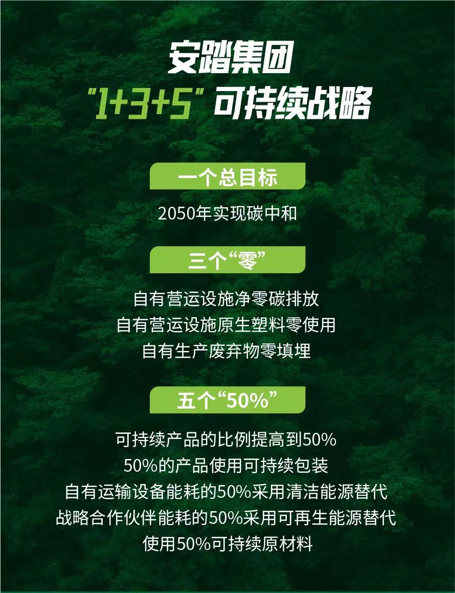 據(jù)了解,安踏集團(tuán)將可持續(xù)發(fā)展作為公司未來十年核心發(fā)展戰(zhàn)略之一,連續(xù)8年發(fā)布ESG報(bào)告,并制定了“1+3+5”可持續(xù)戰(zhàn)略藍(lán)圖,成立可持續(xù)發(fā)展委員會(huì),助力ESG戰(zhàn)略實(shí)際落地與實(shí)施,在業(yè)務(wù)快速擴(kuò)張的同時(shí),持續(xù)加強(qiáng)碳足跡管理,并帶領(lǐng)產(chǎn)業(yè)鏈上下游合作伙伴共同推進(jìn)綠色轉(zhuǎn)型。