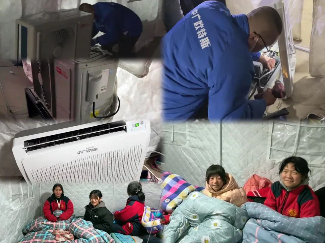 凌晨3時(shí)許,所有捐贈(zèng)的中廣熱泵空調(diào)均在凜冽的寒風(fēng)中穩(wěn)定運(yùn)行,迅速將帳篷內(nèi)的溫度提升到了十幾度,為受災(zāi)群眾送去夜晚嚴(yán)寒中的一股暖流。