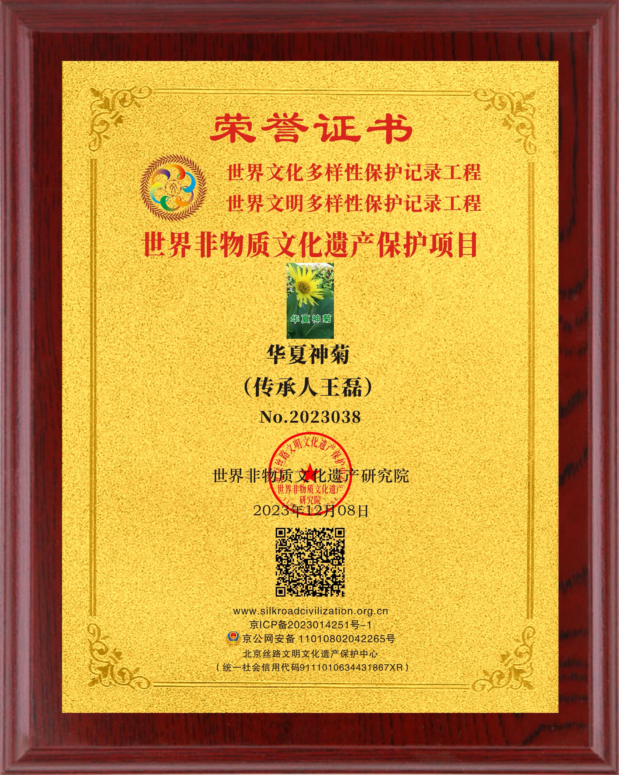 各位“愛菊人”艱難的等待換來了無窮的動(dòng)力,特別是在2023年12月份獲批“世界非物質(zhì)文化遺產(chǎn)保護(hù)項(xiàng)目”是對(duì)“華夏神菊”的種植、加工、研發(fā)、和功能、效果等方面的首肯。經(jīng)歷了近三年的申報(bào)於今年12月8日正式申報(bào)成功,意味著“華夏神菊”已列入“世界非遺”目錄中,這是國(guó)家的榮譽(yù)、我們所有“愛菊人”的榮耀,為此,我們?nèi)A夏神菊產(chǎn)業(yè)報(bào)國(guó)運(yùn)營(yíng)團(tuán)隊(duì)將有新的布局:首先,結(jié)帳清算,調(diào)整種植面積,邀請(qǐng)中科院院士設(shè)立:華夏神菊生命科學(xué)研究院并設(shè)立院士工作站。