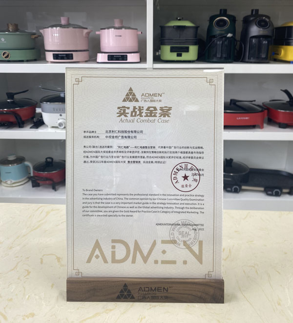 2022年第十一屆ADMEN國際大獎(jiǎng)8月16日在天津揭曉并頒獎(jiǎng),北京利仁科技股份有限公司選送的《“利仁電器”》央視案例榮獲整合營銷類實(shí)戰(zhàn)金案獎(jiǎng)。