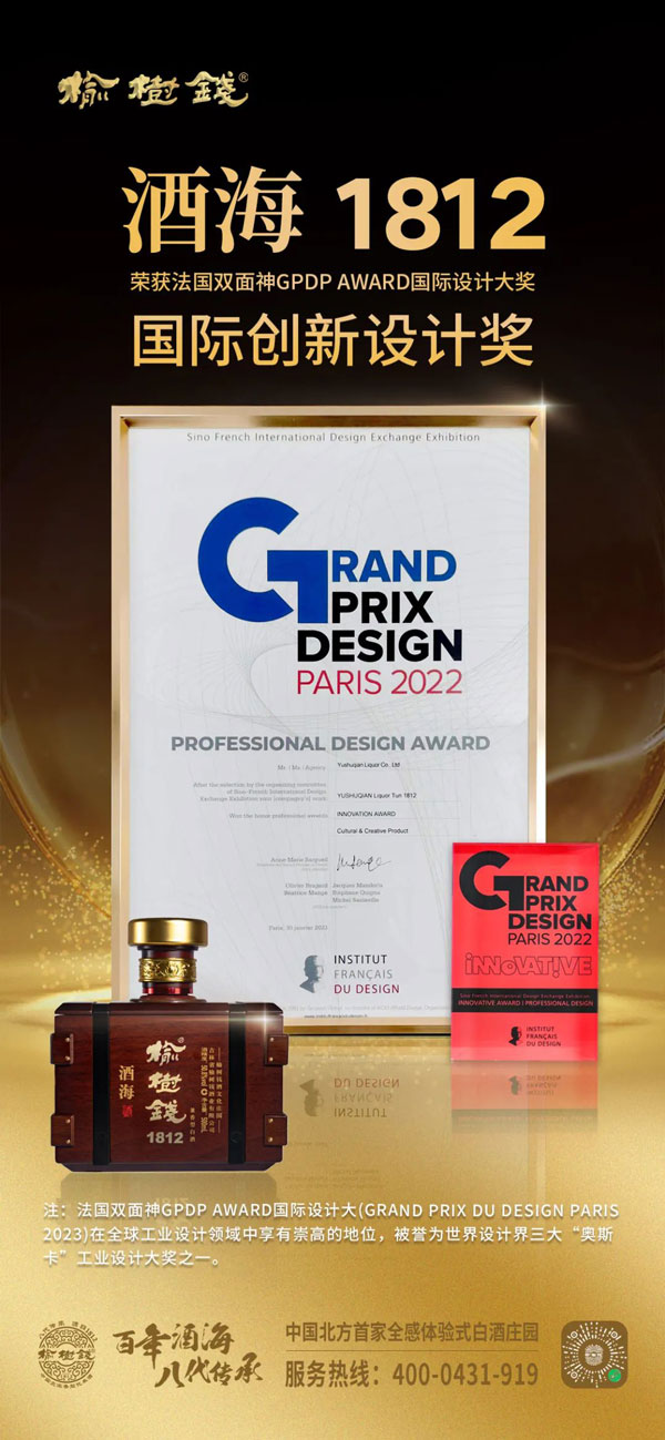 《榆樹錢酒海1812》,成功通過最終評審榮獲法國雙面神GPDP AWARD國際設計大獎-國際創(chuàng)新設計獎!