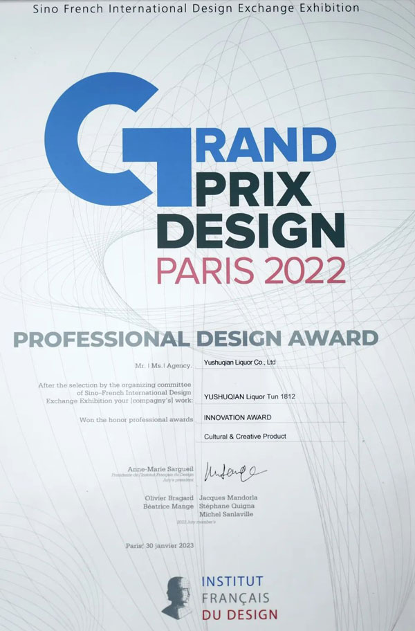 榆樹錢酒業(yè)榮獲法國雙面神GPDP AWARD國際設計大獎-國際創(chuàng)新設計獎