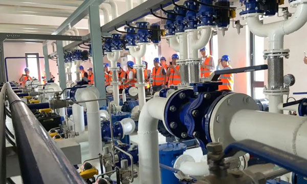 觀摩團(tuán)嘉賓行至B車間參觀尿素溶液灌裝線及智能貨架