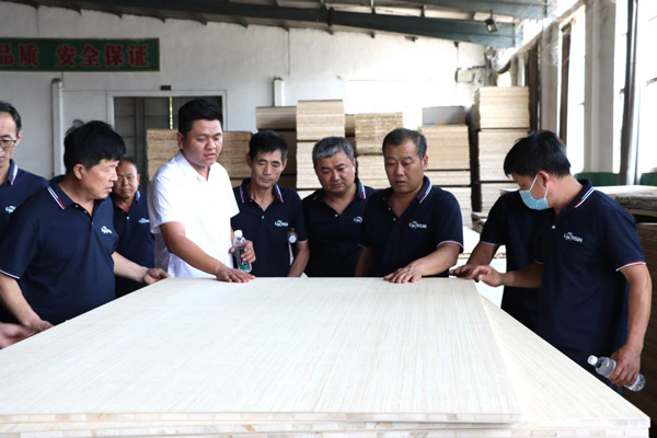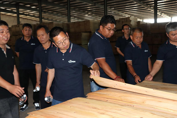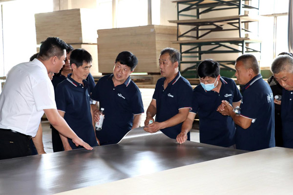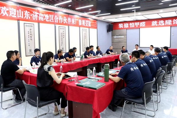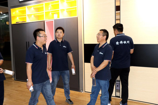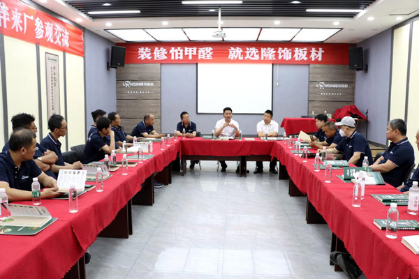為增進經(jīng)銷商對公司的了解,更好地發(fā)展合作關(guān)系,6月8日上午,隆飾板材山東濟南代理商周洪國周總組織當(dāng)?shù)匮b修公司、木工團體、家具加工廠等合作伙伴一行,蒞臨隆飾板材總部進行了參觀交流,通過近距離的實地參觀,深入了解隆飾板材的生產(chǎn)工藝流程。