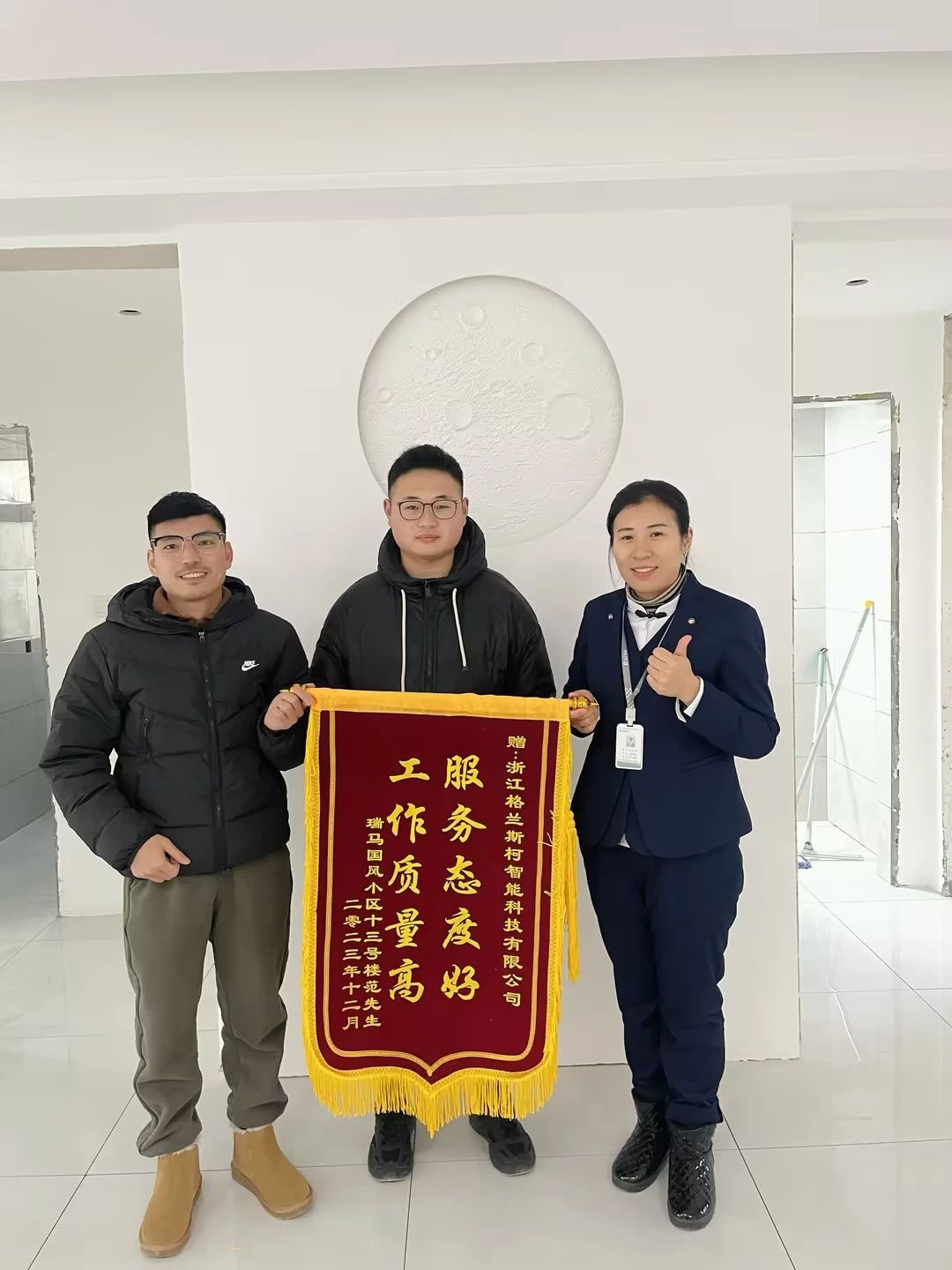 2023年12月,堅(jiān)朗格蘭斯柯新風(fēng)事業(yè)部又增添了一面錦旗--“服務(wù)態(tài)度好,工作質(zhì)量高”,錦旗由瑞馬國(guó)風(fēng)小區(qū)物業(yè)、十三號(hào)樓業(yè)主范先生共同贈(zèng)送,表達(dá)對(duì)格蘭斯柯新風(fēng)專(zhuān)業(yè)、貼心服務(wù)的感謝和認(rèn)可。