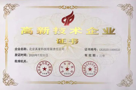 真家科技獲得高新技術(shù)企業(yè)認(rèn)證后,公司可享受國家多重重大利好,在真家科技在科技探索的道路上具有重大里程碑意義。