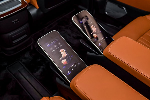 和美之體驗(yàn)。一鍵商洽和一鍵休憩模式輕松切換,兼和商務(wù)儀式與家庭關(guān)愛(ài)。二排C位座椅擁有173°同級(jí)最大舒躺角度,搭配獨(dú)創(chuàng)的“熱石理療”按摩功能,時(shí)刻保持身心舒展;同級(jí)首搭發(fā)動(dòng)機(jī)主動(dòng)降噪,結(jié)合百余項(xiàng)獨(dú)創(chuàng)降噪技術(shù),實(shí)現(xiàn)同級(jí)領(lǐng)先的靜謐水平;“丹拿”殿堂級(jí)智能環(huán)繞音響系統(tǒng),可結(jié)合實(shí)時(shí)車(chē)速動(dòng)態(tài)調(diào)整揚(yáng)聲器音量,實(shí)現(xiàn)全旅程高品質(zhì)Hi-Fi體驗(yàn)。