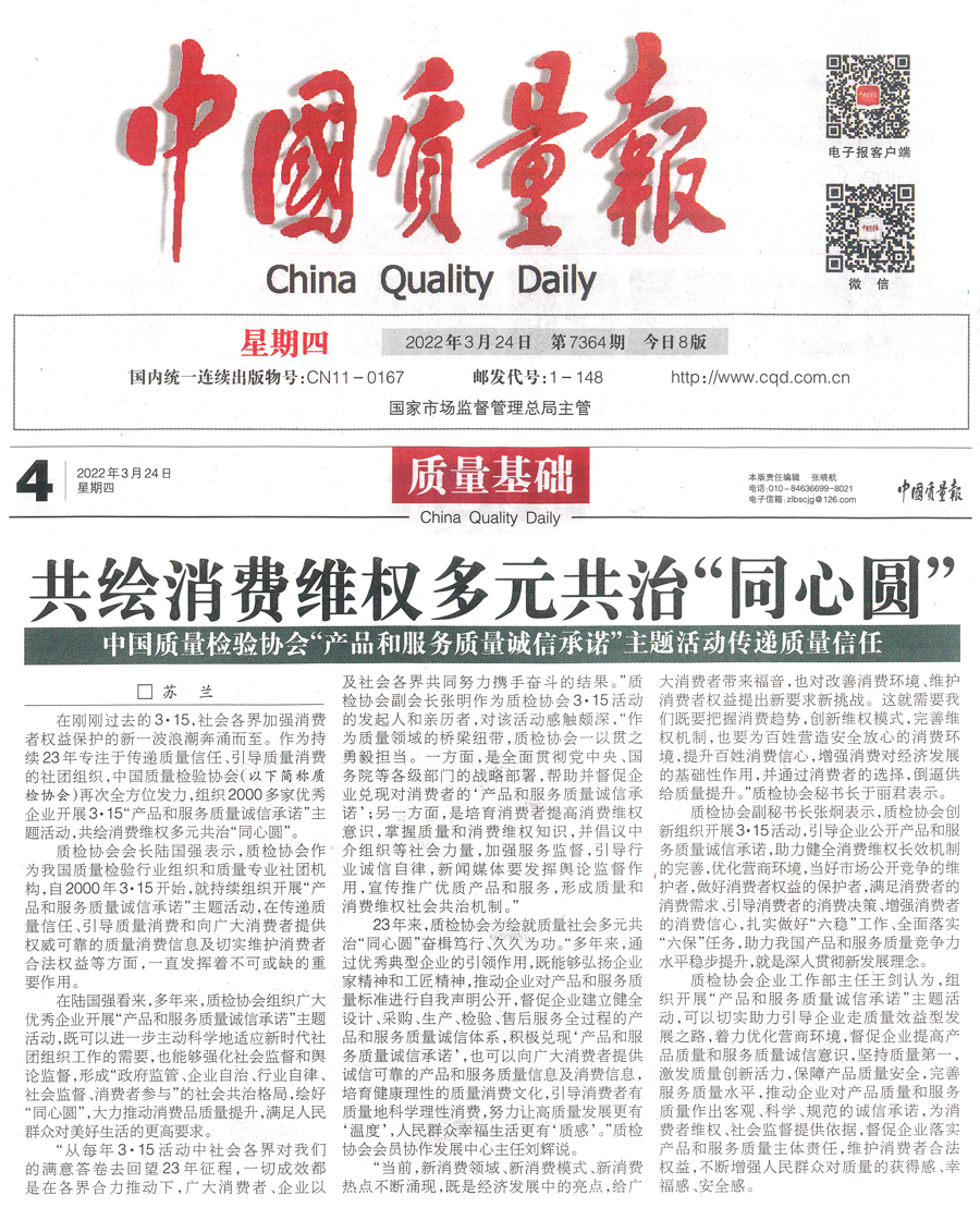 2022年“3.15”國(guó)際消費(fèi)者權(quán)益日“產(chǎn)品和服務(wù)質(zhì)量誠(chéng)信承諾”主題活動(dòng)相關(guān)新聞報(bào)道掠影