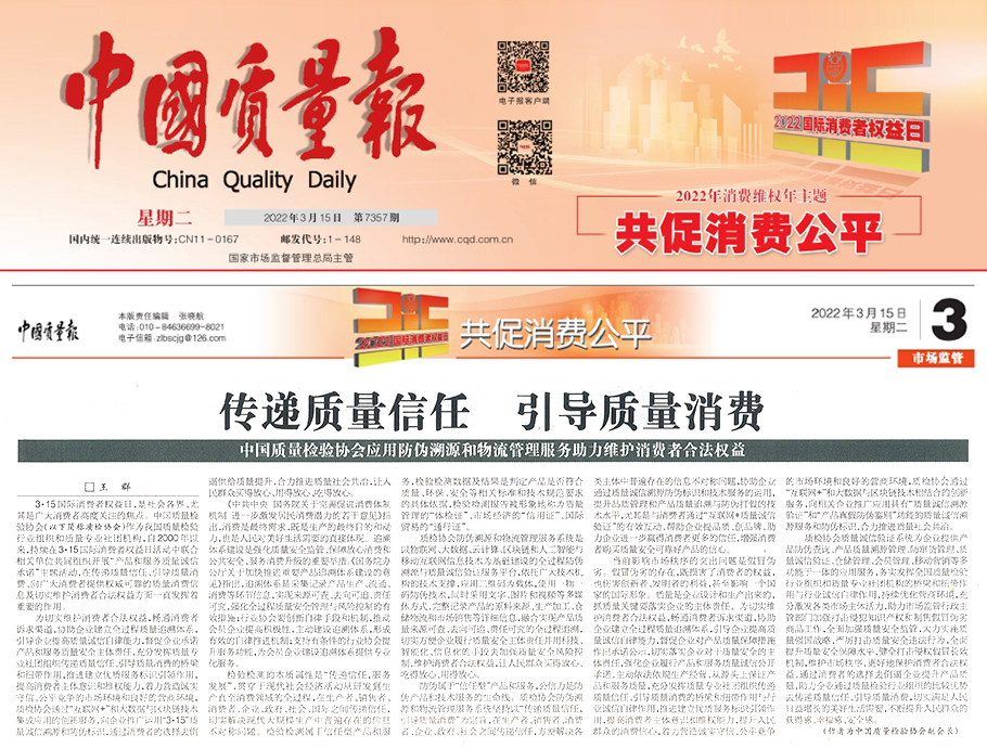 ——中國(guó)質(zhì)量檢驗(yàn)協(xié)會(huì)應(yīng)用防偽溯源和物流管理服務(wù)助力維護(hù)消費(fèi)者合法權(quán)益