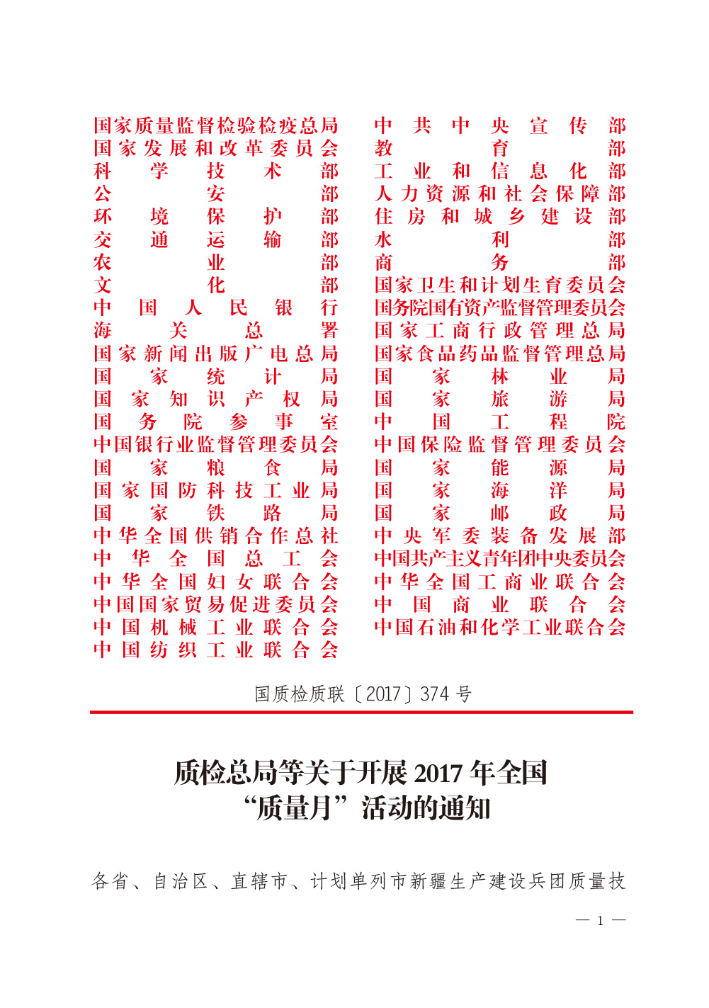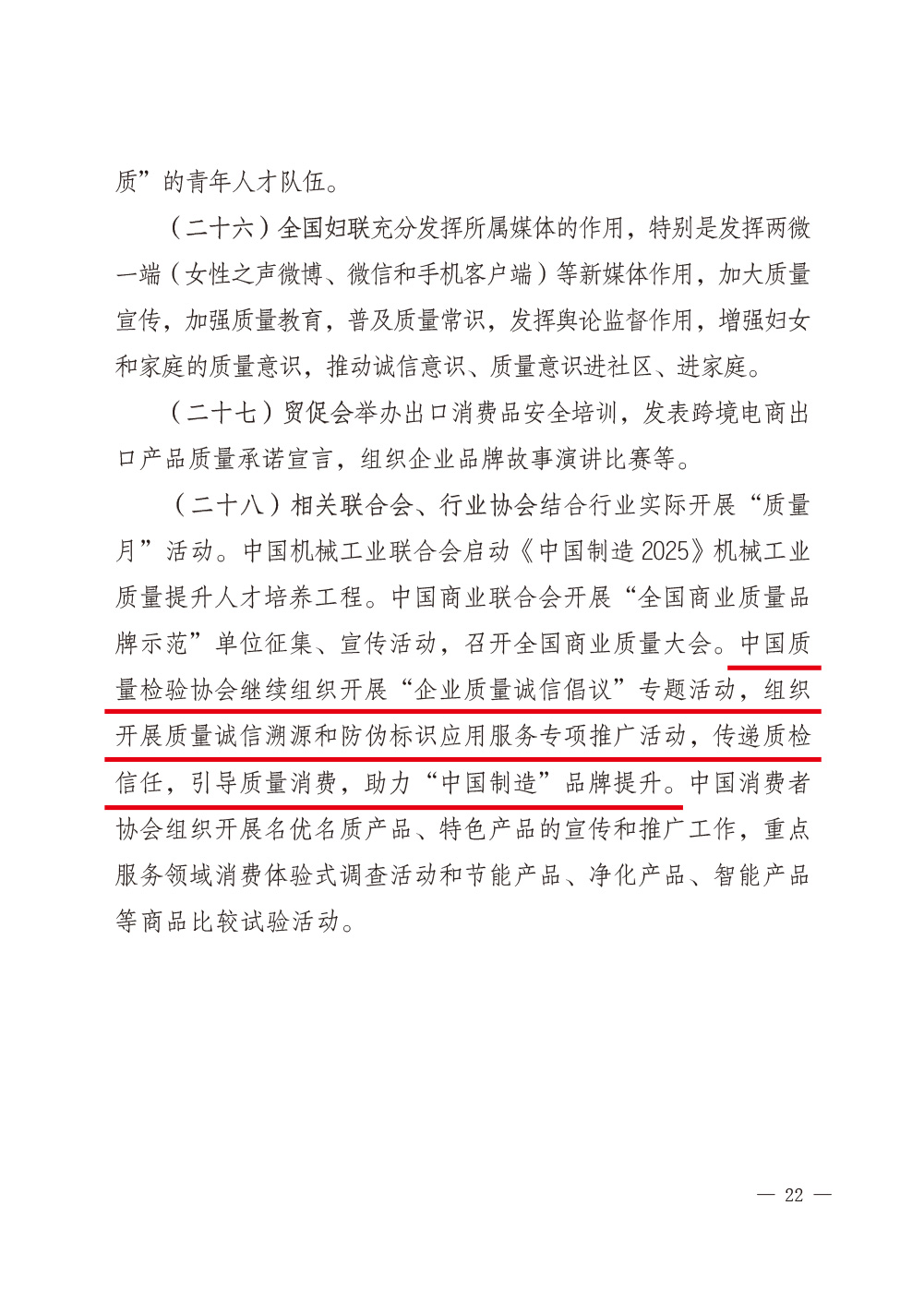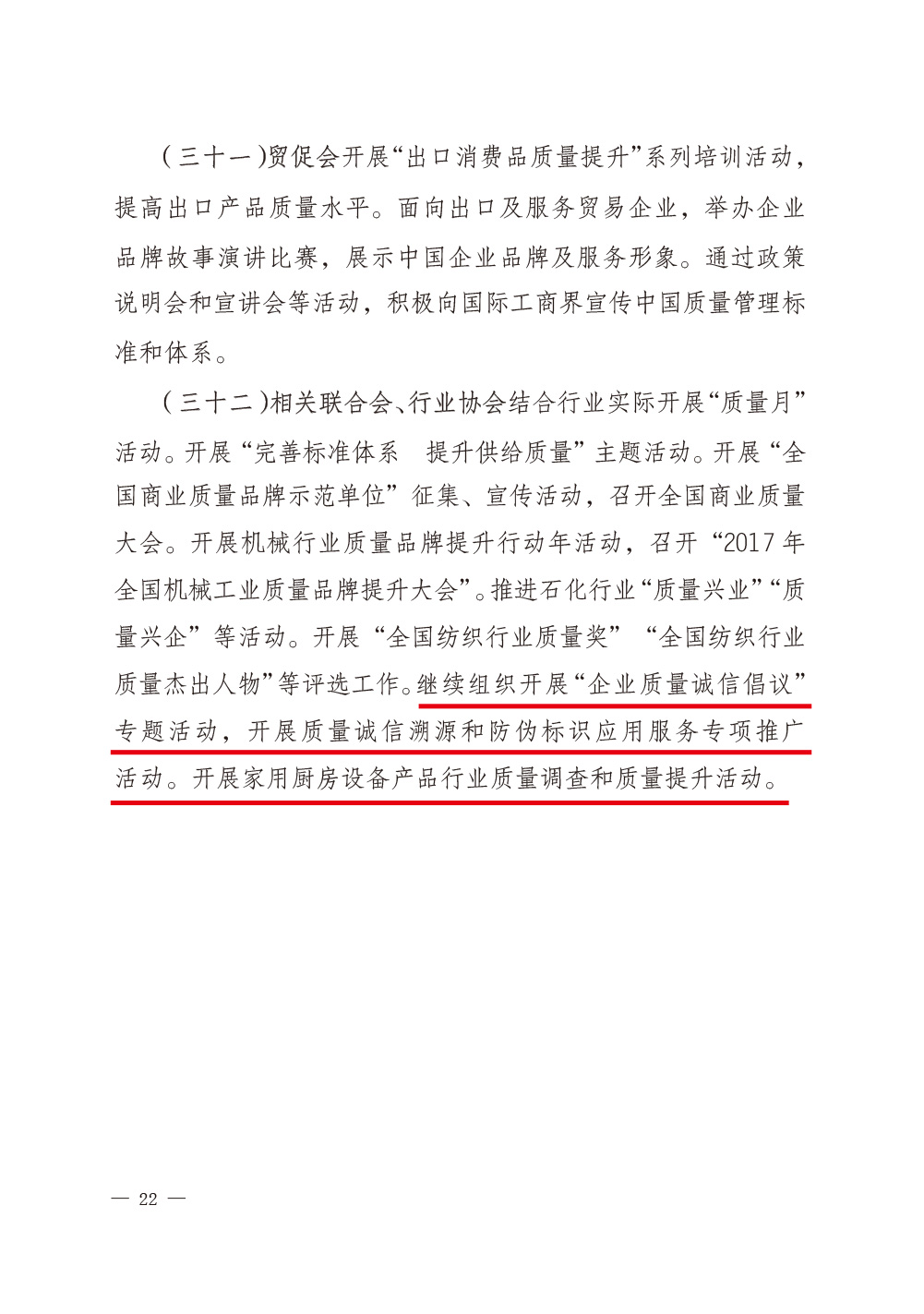 2017年8月23日,國(guó)家質(zhì)檢總局和中共中央宣傳部、國(guó)家發(fā)改委、科學(xué)技術(shù)部、工業(yè)和信息化部、公安部、農(nóng)業(yè)部、商務(wù)部、國(guó)家工商總局、國(guó)家食藥監(jiān)總局等47個(gè)單位(部門(mén))聯(lián)合印發(fā)的《質(zhì)檢總局等關(guān)于開(kāi)展2017年全國(guó)“質(zhì)量月”活動(dòng)的通知》(國(guó)質(zhì)檢質(zhì)聯(lián)〔2017〕374號(hào))再次明確安排部署中國(guó)質(zhì)量檢驗(yàn)協(xié)會(huì):繼續(xù)組織開(kāi)展“企業(yè)質(zhì)量誠(chéng)信倡議”專(zhuān)題活動(dòng),開(kāi)展質(zhì)量誠(chéng)信溯源和防偽標(biāo)識(shí)應(yīng)用服務(wù)專(zhuān)項(xiàng)推廣活動(dòng);同時(shí),還將中國(guó)質(zhì)量檢驗(yàn)協(xié)會(huì)服務(wù)工作核心價(jià)值“傳遞質(zhì)檢信任,引導(dǎo)質(zhì)量消費(fèi)”列入2017年全國(guó)“質(zhì)量月”活動(dòng)宣傳口號(hào)。