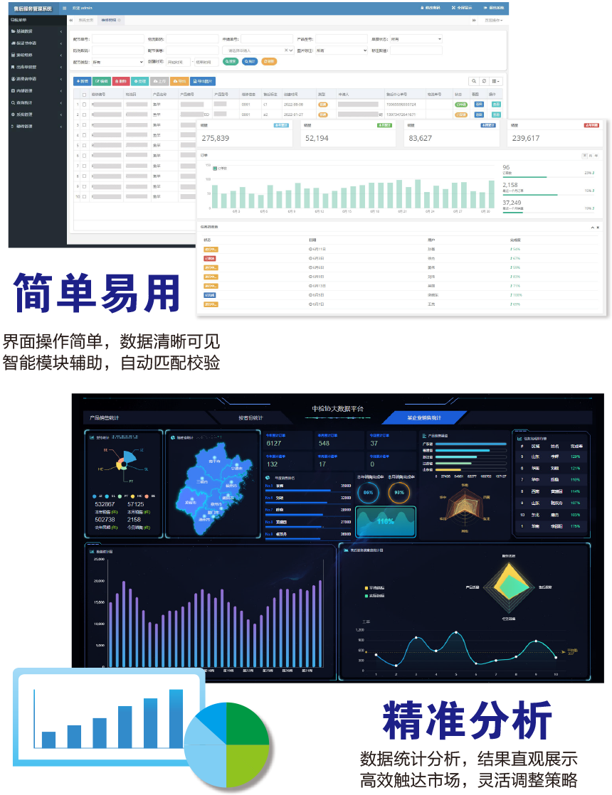應(yīng)用說(shuō)明:基于中國(guó)質(zhì)量檢驗(yàn)協(xié)會(huì)防偽溯源和物流管理服務(wù)系統(tǒng)的一品一碼,采用數(shù)字化的手段統(tǒng)一管理售后維修體系,解決目前企業(yè)存在的手動(dòng)工作量大,操作繁瑣和數(shù)據(jù)分散不方便統(tǒng)計(jì)等問(wèn)題,串聯(lián)產(chǎn)品管理過(guò)程的每一個(gè)環(huán)節(jié),打通整個(gè)業(yè)務(wù)的數(shù)據(jù)鏈條,優(yōu)化工作內(nèi)容,提升工作效率。實(shí)現(xiàn)銷(xiāo)售單自動(dòng)導(dǎo)入、維修標(biāo)簽打印、過(guò)程統(tǒng)一管理、信息匯總操作、任務(wù)定時(shí)執(zhí)行、郵件通知、OCR智能識(shí)別圖像和維修價(jià)格自動(dòng)計(jì)算等功能,增強(qiáng)企業(yè)的市場(chǎng)綜合競(jìng)爭(zhēng)力。