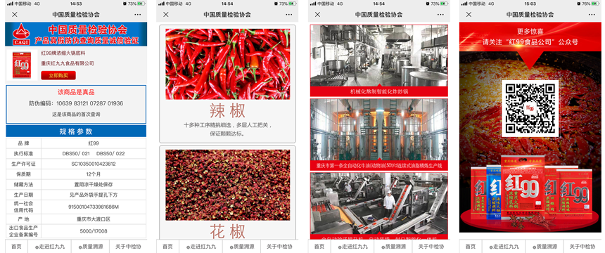質(zhì)量檢驗(yàn)作為確保產(chǎn)品質(zhì)量的基礎(chǔ),貫穿于現(xiàn)代經(jīng)濟(jì)活動(dòng)從研發(fā)到生產(chǎn)直至消費(fèi)領(lǐng)域的全過(guò)程。中國(guó)質(zhì)量檢驗(yàn)協(xié)會(huì)作為全國(guó)質(zhì)量檢驗(yàn)行業(yè)組織,具有“傳遞信任,服務(wù)發(fā)展”的本質(zhì)屬性。中檢聯(lián)合質(zhì)量誠(chéng)信驗(yàn)證系統(tǒng)堅(jiān)持以“傳遞質(zhì)量信任、引導(dǎo)質(zhì)量消費(fèi),建立消費(fèi)者和企業(yè)信任的平臺(tái)”為宗旨,在生產(chǎn)者、銷(xiāo)售者、消費(fèi)者、企業(yè)、政府、社會(huì)之間傳遞信任,方便解決各類(lèi)主體中普遍存在的信息不對(duì)稱(chēng)問(wèn)題,協(xié)助企業(yè)通過(guò)質(zhì)量誠(chéng)信溯源防偽標(biāo)識(shí)和技術(shù)服務(wù)的運(yùn)用,提升品質(zhì)管理和產(chǎn)品質(zhì)量追溯與防偽打假的技術(shù)水平,尤其是與消費(fèi)者通過(guò)“互聯(lián)網(wǎng)+質(zhì)量誠(chéng)信驗(yàn)證”的有效互動(dòng),幫助企業(yè)提品質(zhì)、創(chuàng)品牌,助力企業(yè)進(jìn)一步贏得消費(fèi)者更多的信任,增強(qiáng)消費(fèi)者購(gòu)買(mǎi)質(zhì)量安全可靠好產(chǎn)品的信心。