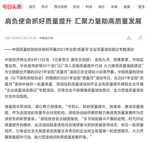 今日頭條:肩負(fù)使命抓好質(zhì)量提升 匯聚力量助高質(zhì)量發(fā)展——中國質(zhì)量檢驗協(xié)會組織開展2021年全國“質(zhì)量月”企業(yè)質(zhì)量誠信倡議專題活動