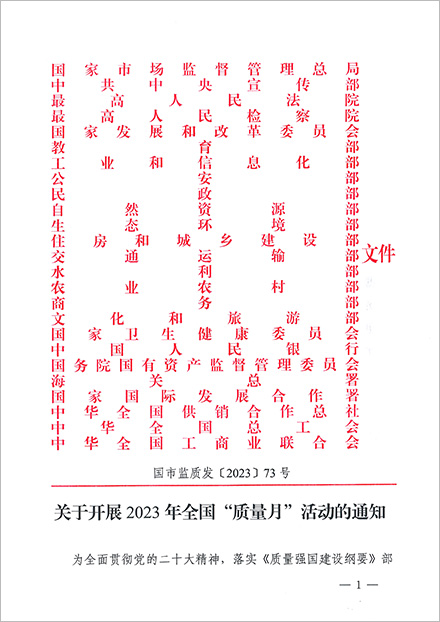 全國“質(zhì)量月”活動是我國長期開展的一項重大質(zhì)量活動,是在政府主管部門的倡導(dǎo)和部署下,聯(lián)合國家相關(guān)部委(部門)和單位并發(fā)動廣大企業(yè)與全社會積極參與,一年一度以多種形式于每年9月在全國范圍內(nèi)組織開展跨時一個月并旨在提高全民質(zhì)量意識和質(zhì)量水平的國家級大型質(zhì)量專題活動,全力營造人人關(guān)心質(zhì)量、重視質(zhì)量、創(chuàng)造質(zhì)量、享受質(zhì)量的良好社會氛圍,推進(jìn)建設(shè)質(zhì)量強(qiáng)國。